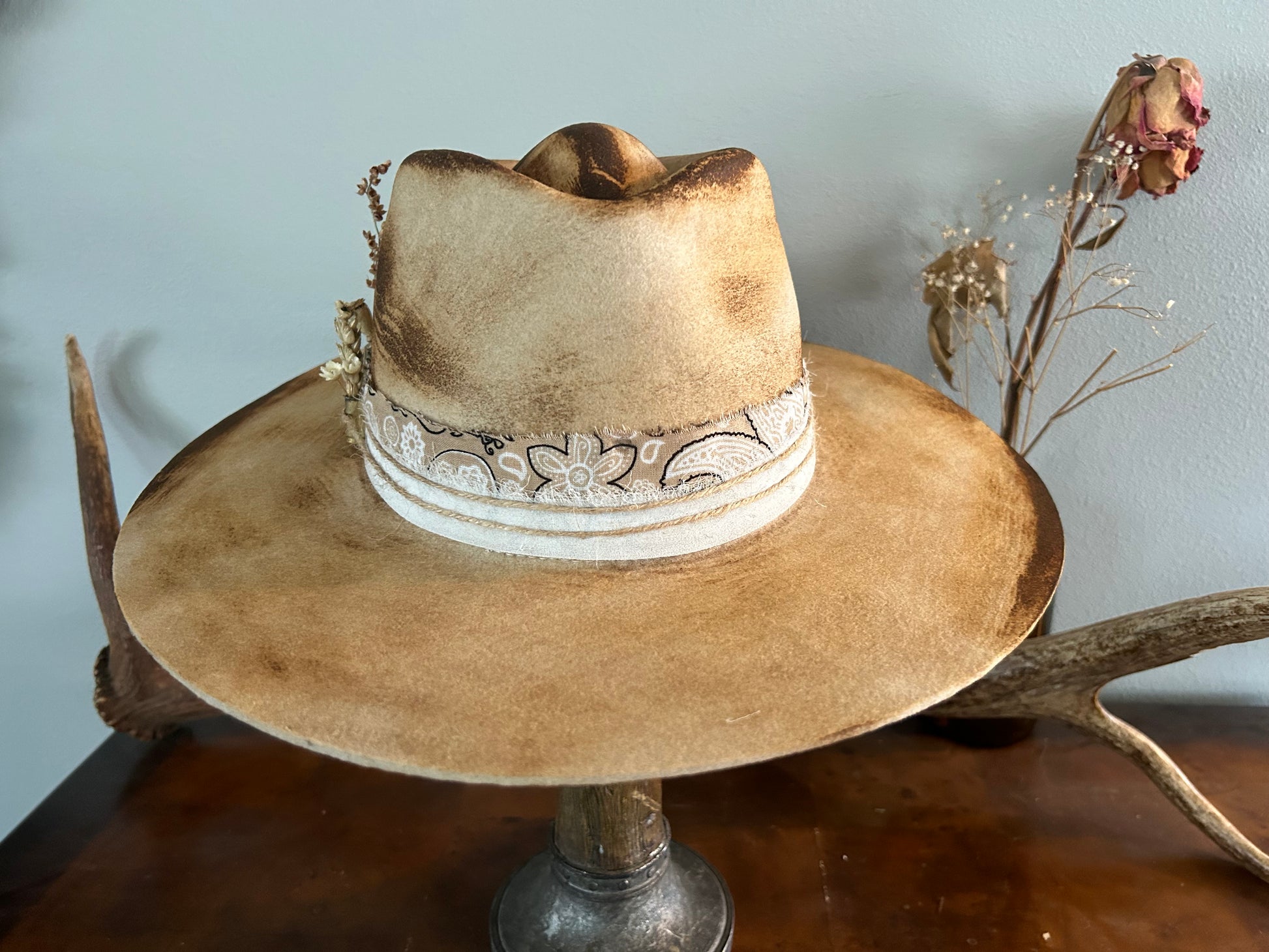 Cream rancher burned and distressed