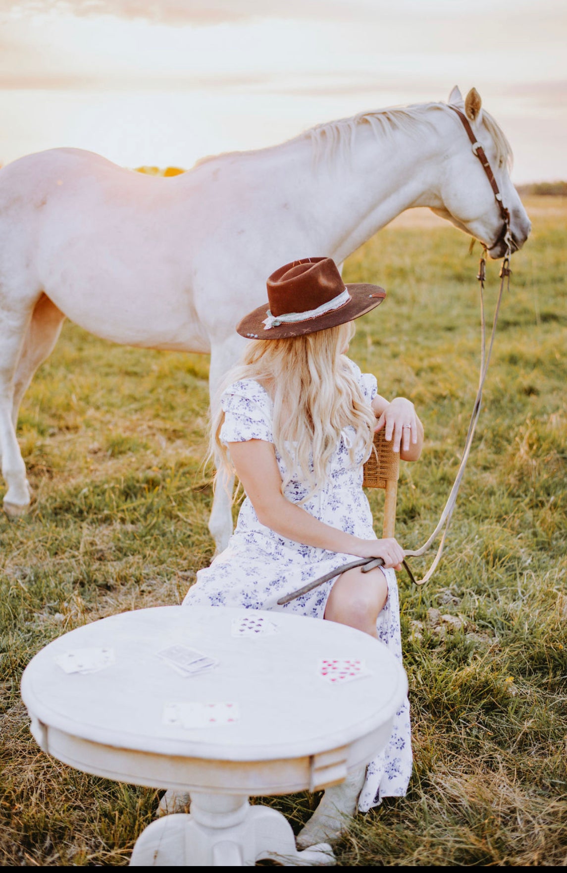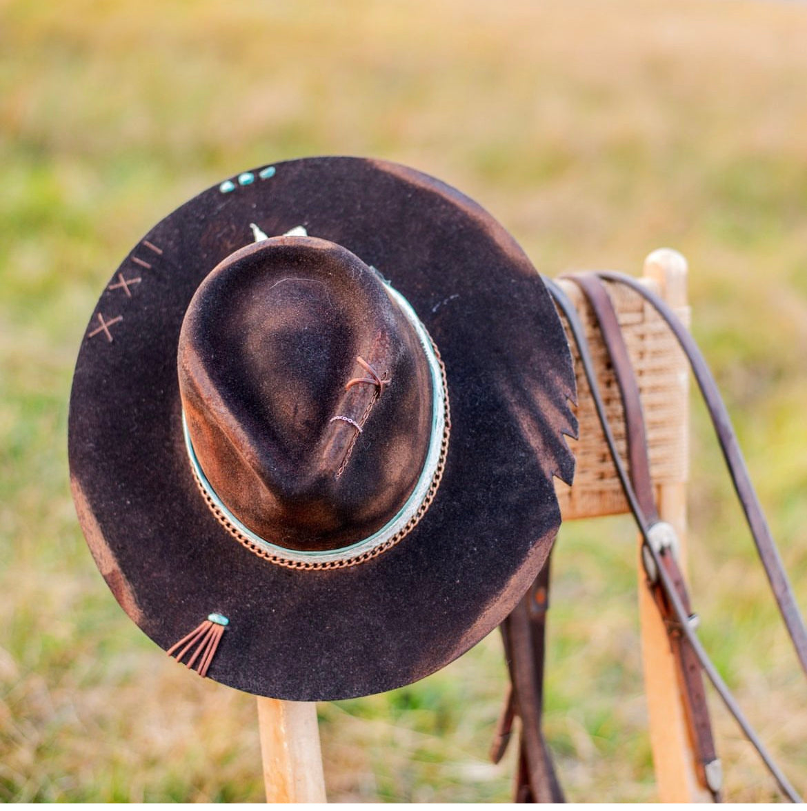100% canadian wool Black rancher with silk bandanna and lace band, with embellishments